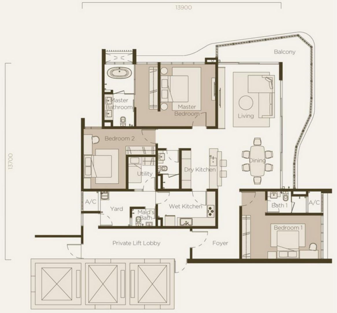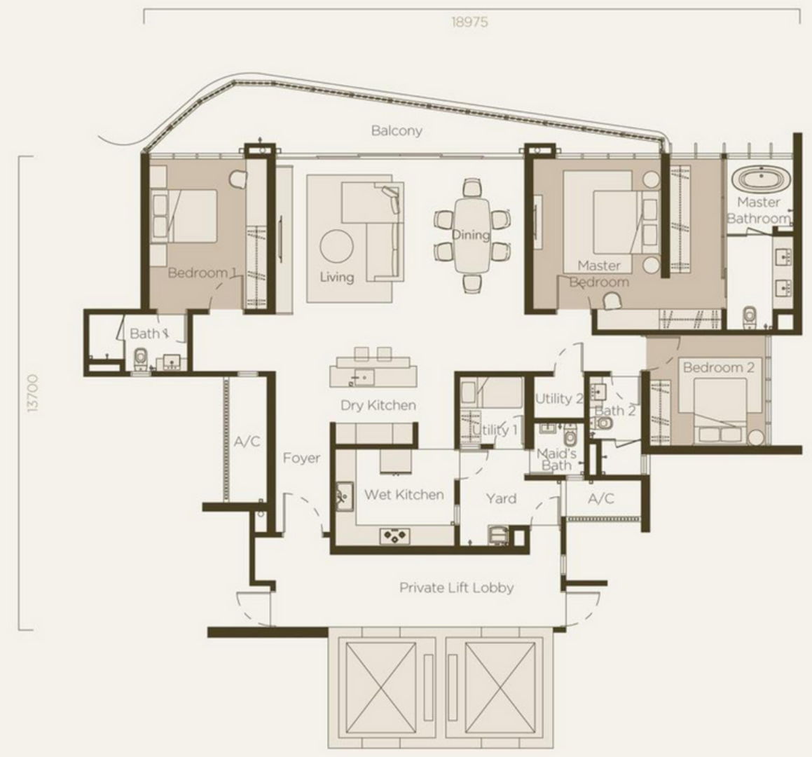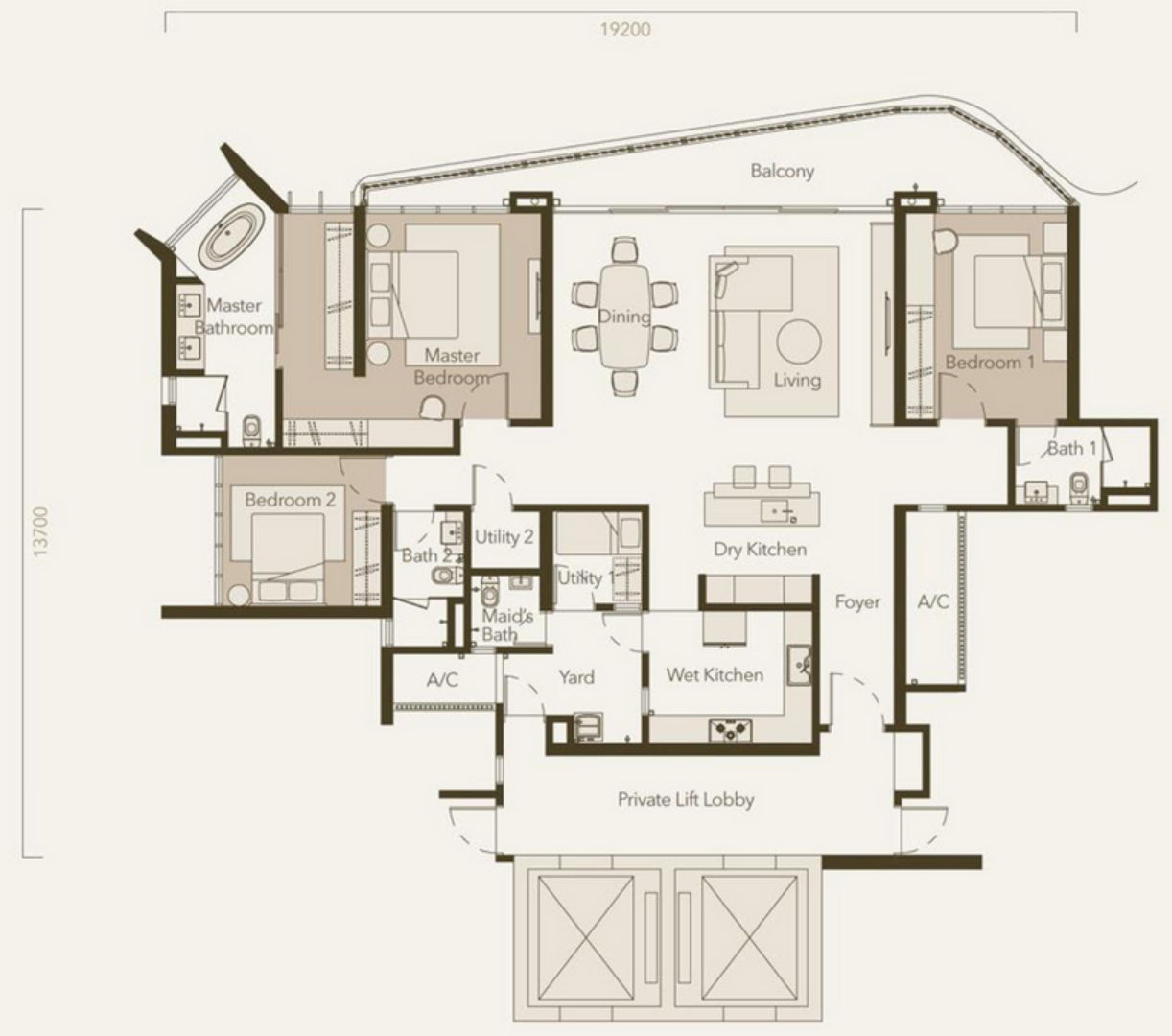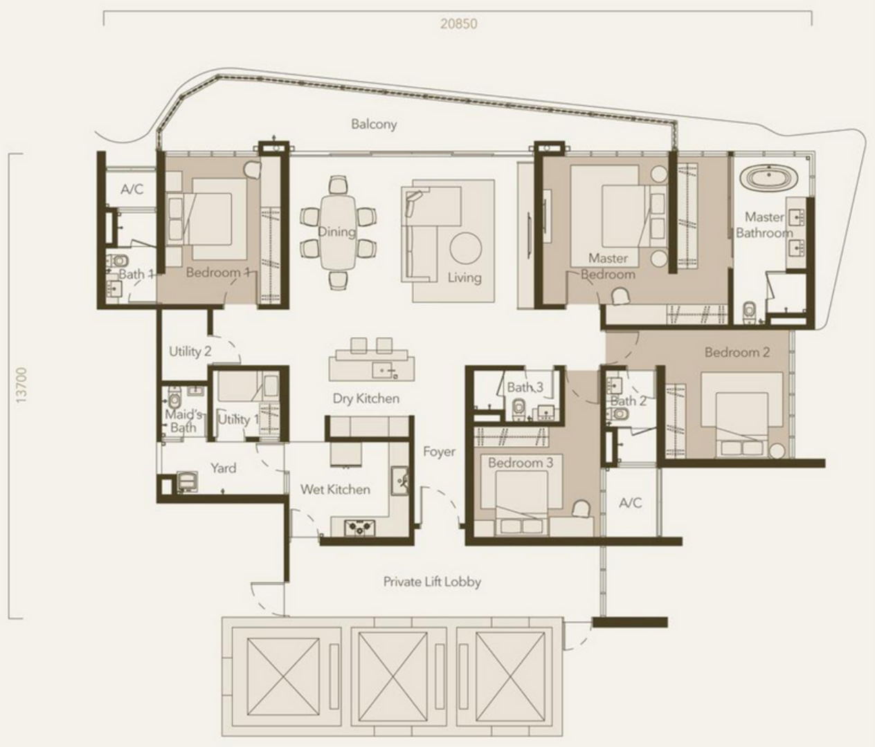 Setia Sky Seputeh units are large size from 2,300sqft to 3,000sqft with the intention to serve as a replacement for landed houses. You would not typically find landed houses with KL address due to the land scarcity. Hence why Large sizes with above 2000sqft has became a strong demand as a replacement.